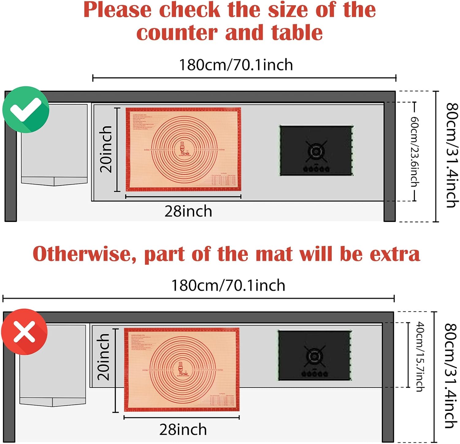 Non-slip Silicone Pastry Mat Extra Large with Measurements 28''By 20'' for Silicone Baking Mat, Counter, Dough Rolling, Oven Liner,Fondant/Pie Crust By Folksy Super Kitchen Red