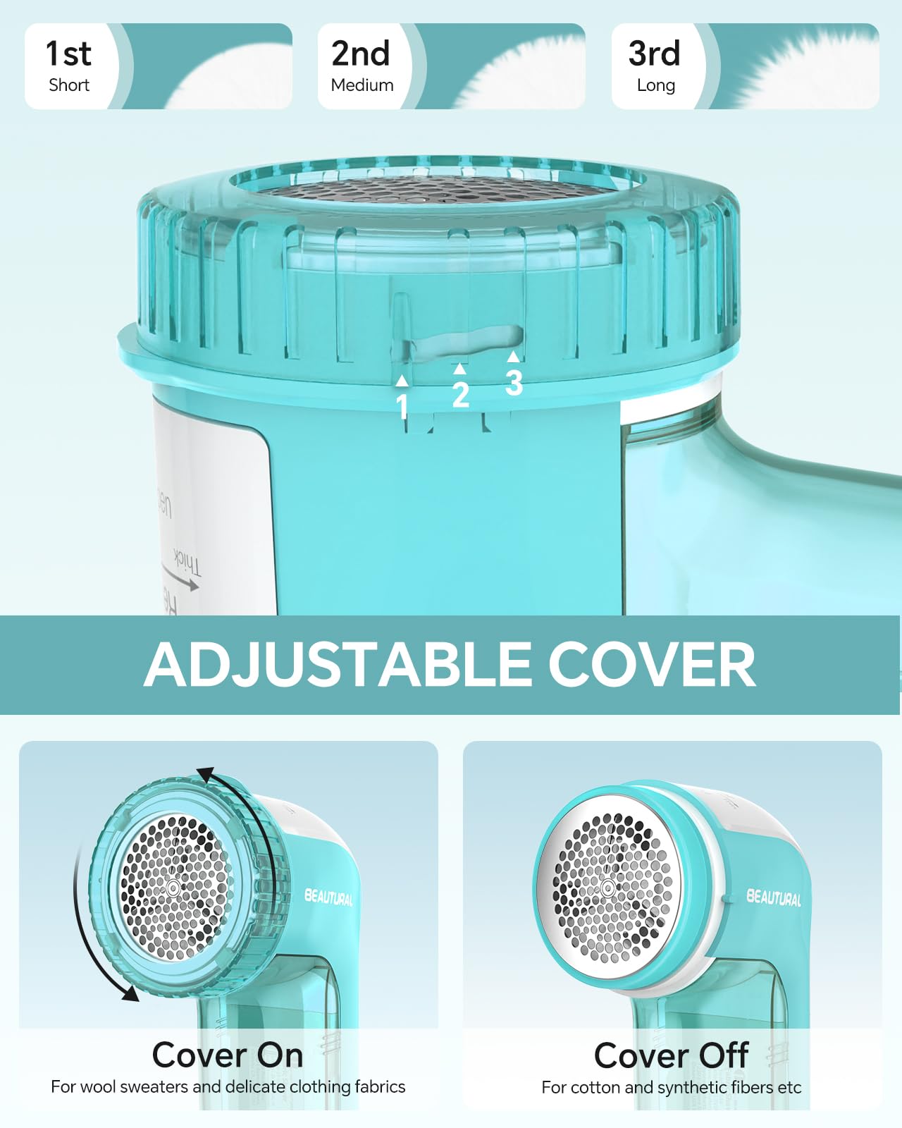 BEAUTURAL Fabric Shaver and Lint Remover, Sweater Defuzzer with 2-Speeds, 2 Replaceable Stainless Steel Blades, Battery Operated, Remove Clothes Fuzz, Lint Balls, Pills, Bobbles Gray